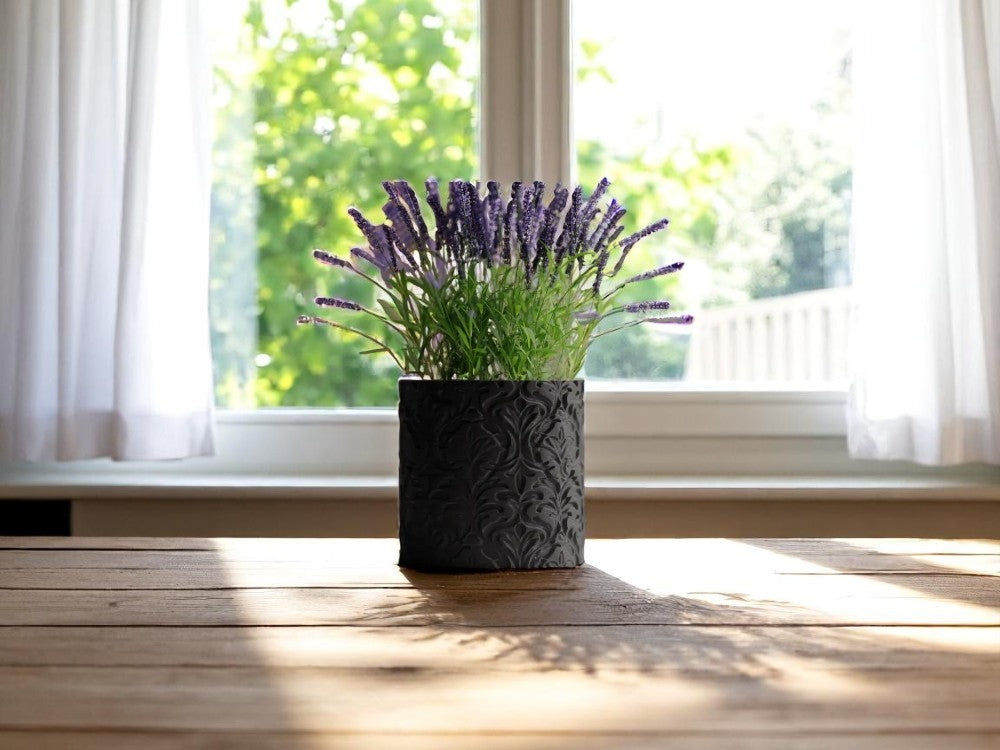 Son format généreux de 4 pouces et demi de diamètre et 4 pouces et demi de profondeur permet d’accueillir une variété de plantes, des succulentes aux petites compositions florales. Conçu en matériau robuste avec une finition texturée inspirée du bois, il allie esthétique et durabilité.